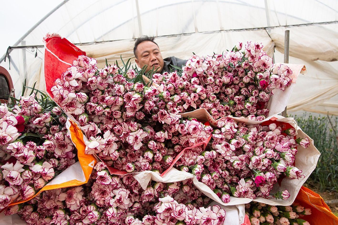 春节临近,鲜花畅销。云南曲靖沾益区各花卉种植基地,花农们正忙着采收、打包、运输鲜花,供应年节市场。(人民网)