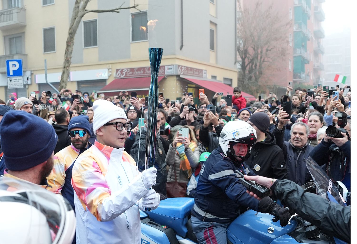 当地时间2月5日,2026年米兰-科尔蒂纳冬奥会火炬米兰站传递正式开启。首棒火炬由一名曾服务于北京奥运会和北京冬奥会的中国志愿者张文全完成。根据米兰冬奥会组委会公布的奥运火炬传递路线,火炬于2025年12月6日至2026年2月6日传递,总里程约1.2万公里,途经意大利全部20个大区、110个省,在300余个市镇传递,最终将于2026年2月6日晚抵达米兰冬奥会开幕式现场。(中新社)
