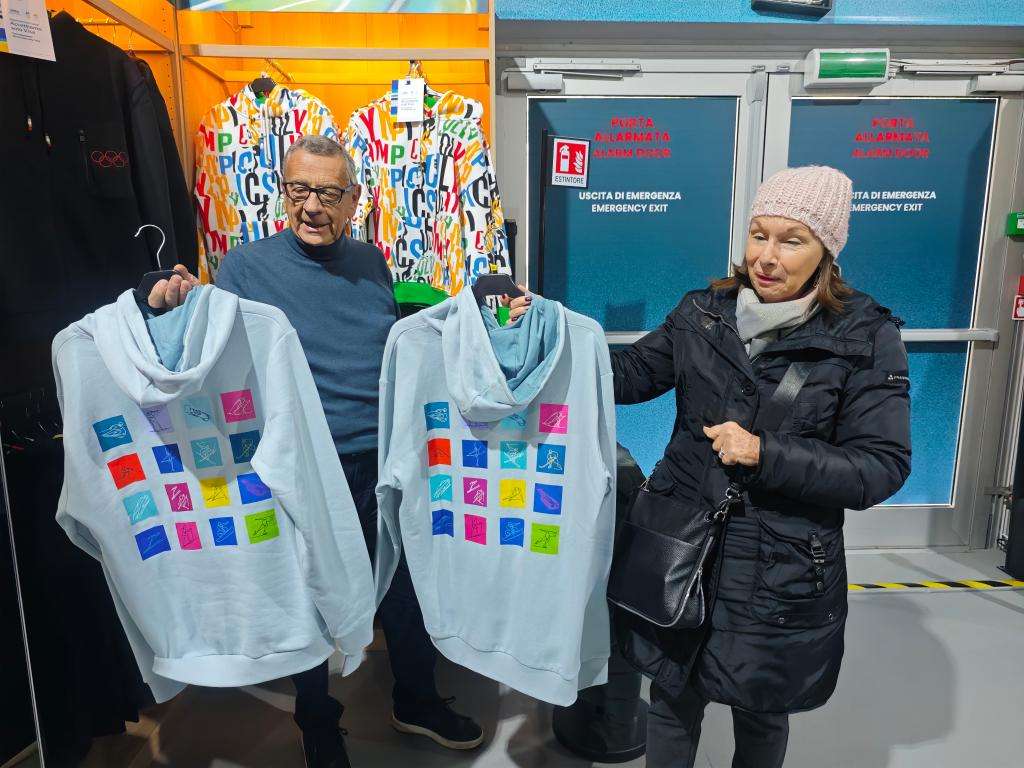 图为市民在位于米兰大教堂广场的冬奥会官方纪念品旗舰店内购买米兰冬奥会纪念衫。(新华社)