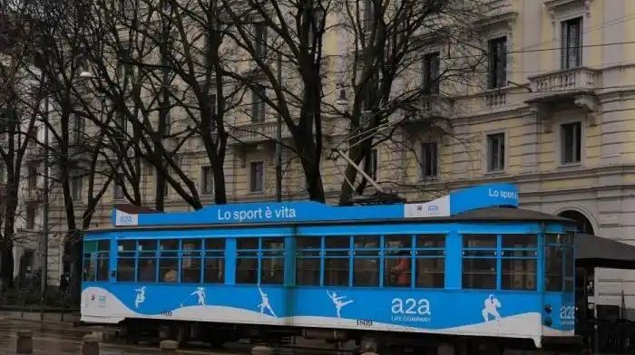 2月3日,带有冬奥元素的有轨电车在意大利米兰街头行驶。(中新网)