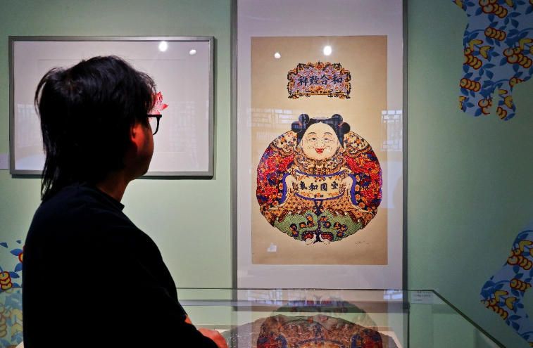 2月4日,观众参观展出的年画。(新华社)