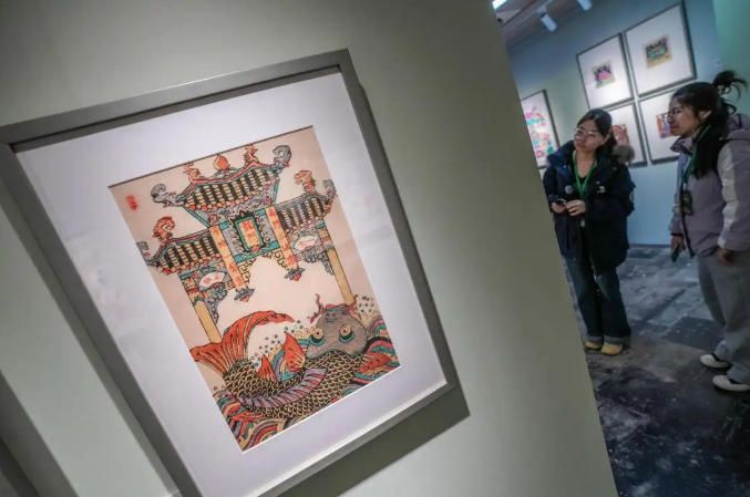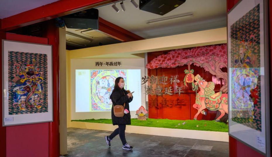 2月5日,恭王府博物馆,观众欣赏天津杨柳青、河北武强等地的年画。2月4日,“岁朝迎祥 美意延年——恭王府博物馆藏传统木版年画展”在北京恭王府博物馆开幕。展览以“丙午·年画过年”为主题,展出恭王府博物馆藏天津杨柳青、河北武强等多地百余件年画精品,营造贺岁氛围,寄托马年祈福迎祥的愿景。(北京《新京报》)