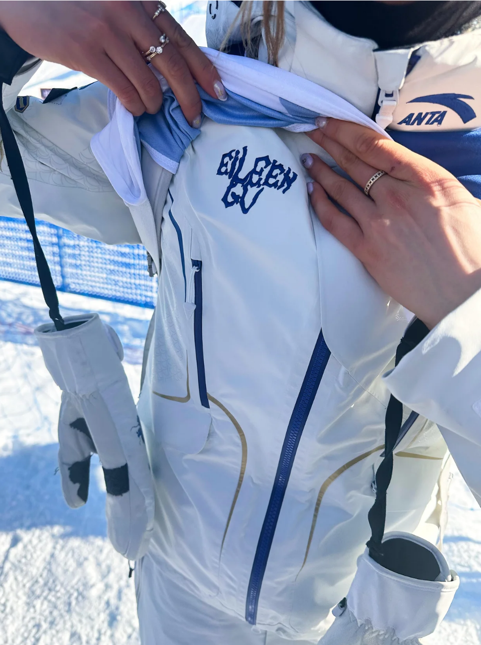 此外,据上述媒体报道,这套比赛服还有一些其他细节。谷爱凌介绍说,雪服主要以蓝白青花瓷配色为主,并辅以金色点缀。另外,雪服上包含有她名字的LOGO是由她和朋友一起设计创作。雪服左袖上还配有温度计和指南针。