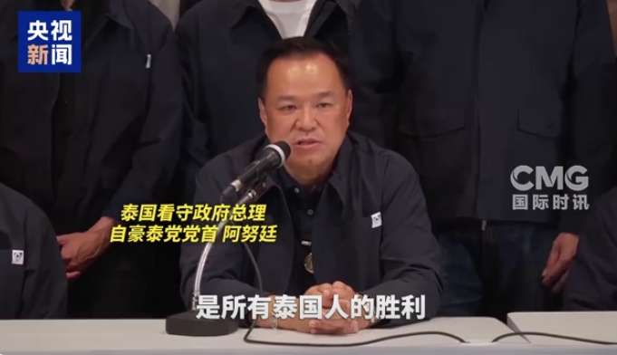 泰国自豪泰党宣布胜选。(图/中国央视新闻视频截图)