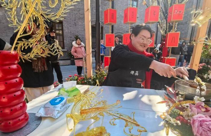 小刘现场制作糖画。(图/中新网)