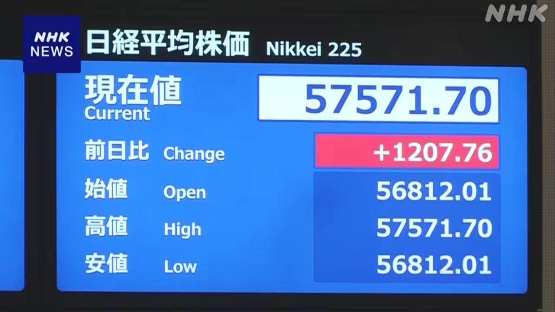 受此影响,日经平均指数盘中一度上涨超过1200点,升至5万7500点区间,并刷新交易时间内的历史最高值。