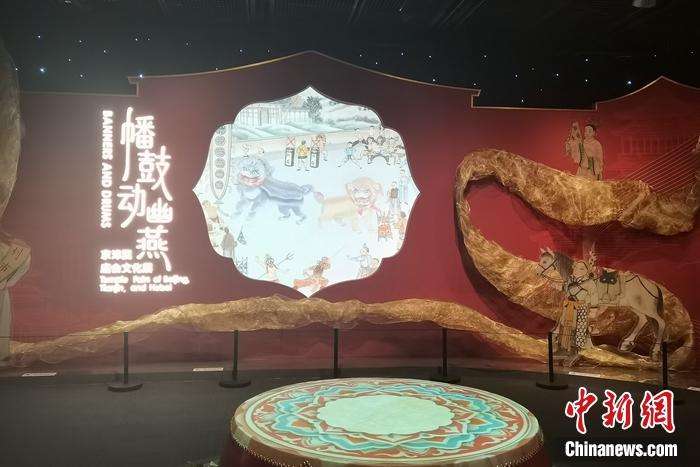 走进展厅,浓浓的年味扑面而来。入口处,一面大鼓上呈现不断变化的骏马光影形象,屏幕里播放着舞狮画面,置身其中,令人感觉像是来到了热闹的庙会现场。