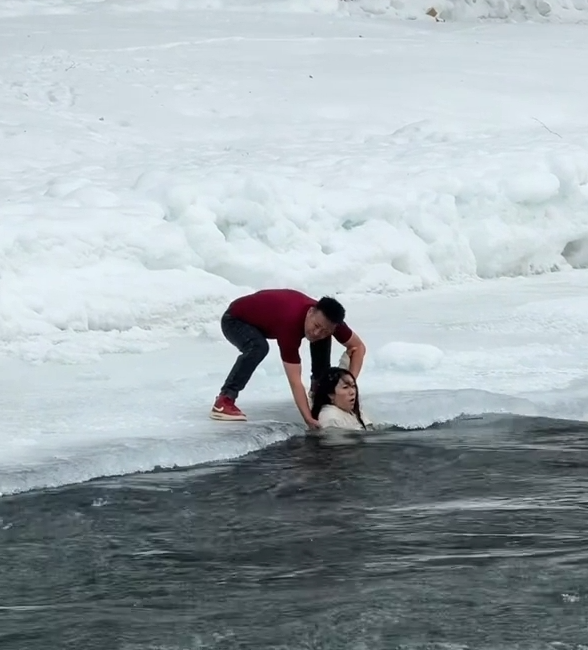 2月10日,有网民发视频称,她在新疆喀纳斯景区游玩时,发现一名小女孩不慎跌落到湍急的冰河之中,她的母亲救人心切也跳入了水中,两人一度被水流冲走,万幸被附近的其他游客组队救出,场面十分惊险。