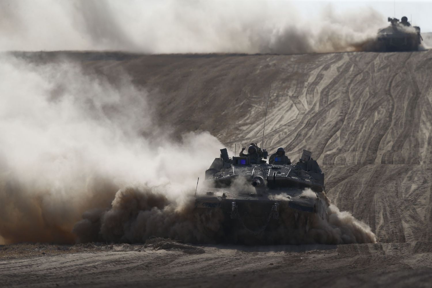 图为在以色列与加沙边境以方一侧拍摄的以军部队。(图/新华社)
