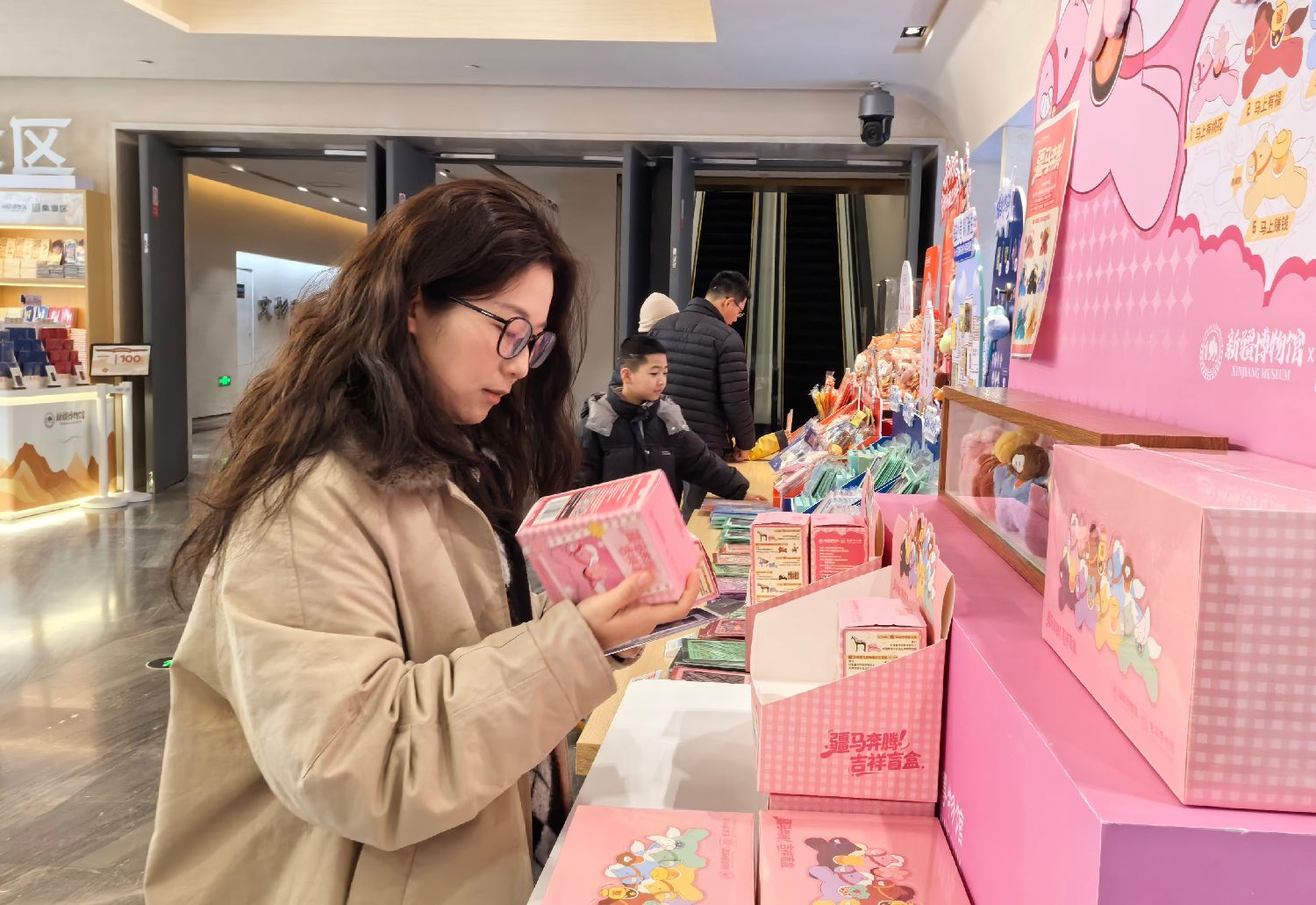 “新疆文创产品在互联网上热度很高。这次来新疆旅游,‘淘’到了喜欢的产品,作为春节伴手礼送给家人亲友。”2月12日,在新疆博物馆文创展区,江苏南京游客王晰购买了两个“疆马奔腾”吉祥盲盒。