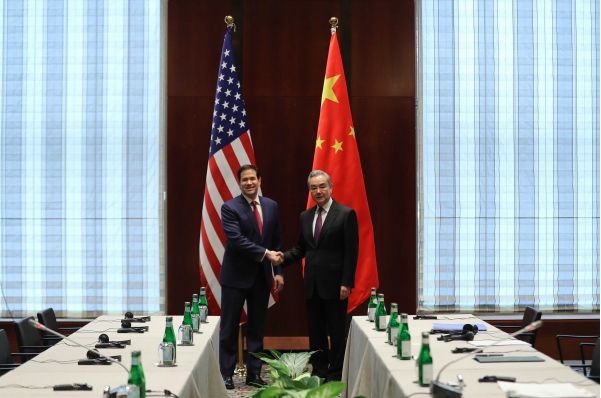 当地时间13日,中共中央政治局委员、外交部长王毅在出席慕尼黑安全会议期间会见美国国务卿鲁比奥。(图/中国外交部网站)
