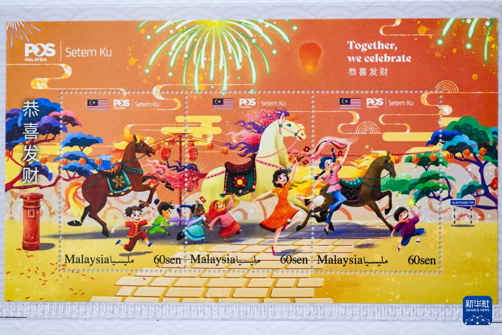 这是2月5日在马来西亚吉隆坡拍摄的一套马年邮票。新华社记者程一恒摄