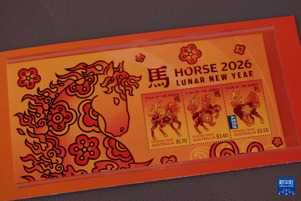 自今年1月6日起,澳大利亚邮政公司在全国发售马年邮票。三枚邮票上,骏马姿态各异,身饰梅花、灯笼与盘长结,鬃与尾如烈焰升腾。澳邮政公司官网说,金红配色寓意吉祥,火焰般的毛发象征着农历丙午“火马年”,展现出骏马蕴含的蓬勃能量。