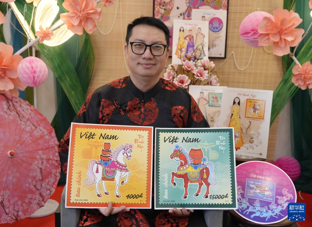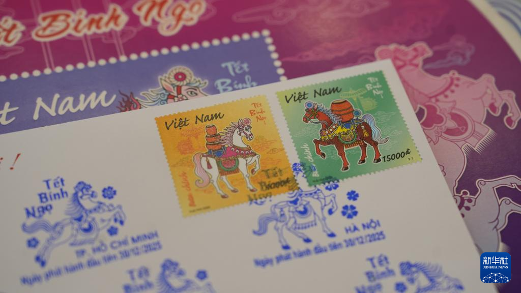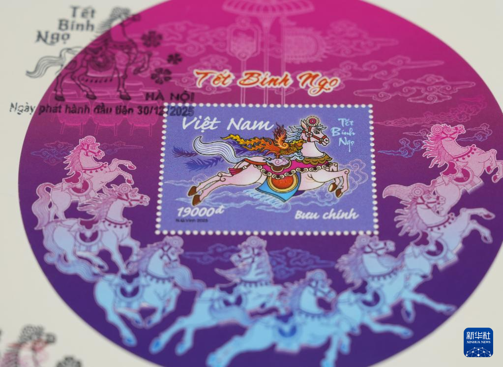 为迎接农历新春,越南近期发行了两枚邮票及一枚小型张等邮品,图案融入了当地民俗。邮票上,红色公马和白色母马披挂盛装,驮着乐鼓,轻抬前蹄。设计本轮生肖邮票的越南画家阮光荣介绍道,两枚邮票上的马,呈双马相对的构型,“就像完整的乐鼓阵是春节必备,人们擂鼓助兴,喜迎新年”。
