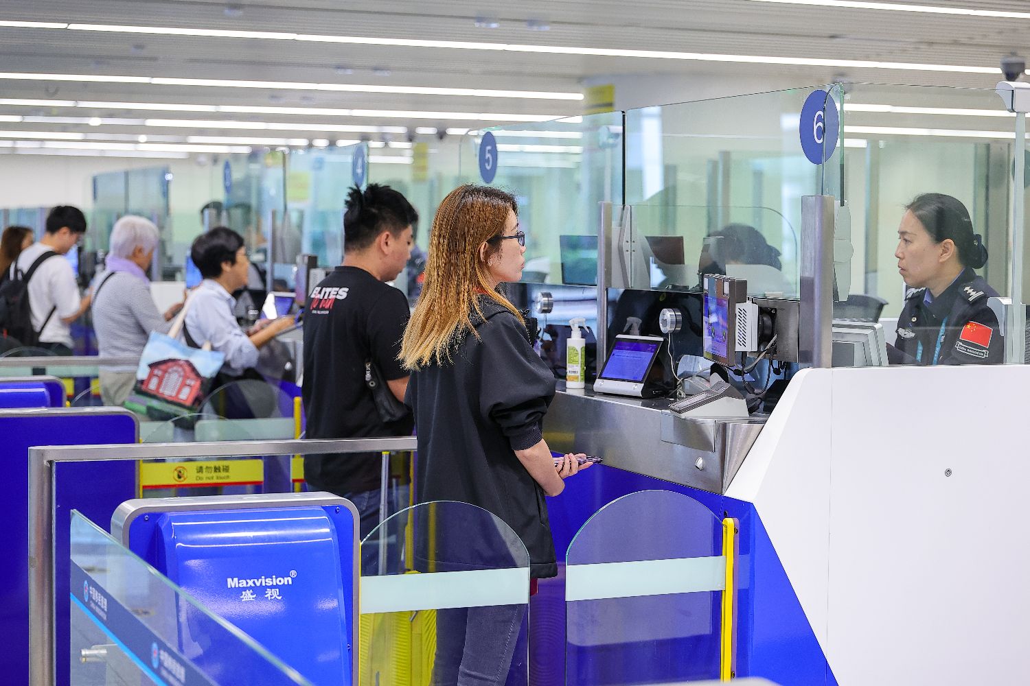 1月17日,海口美兰出入境边防检查站执勤民警为旅客办理边检手续。(图/中新社)