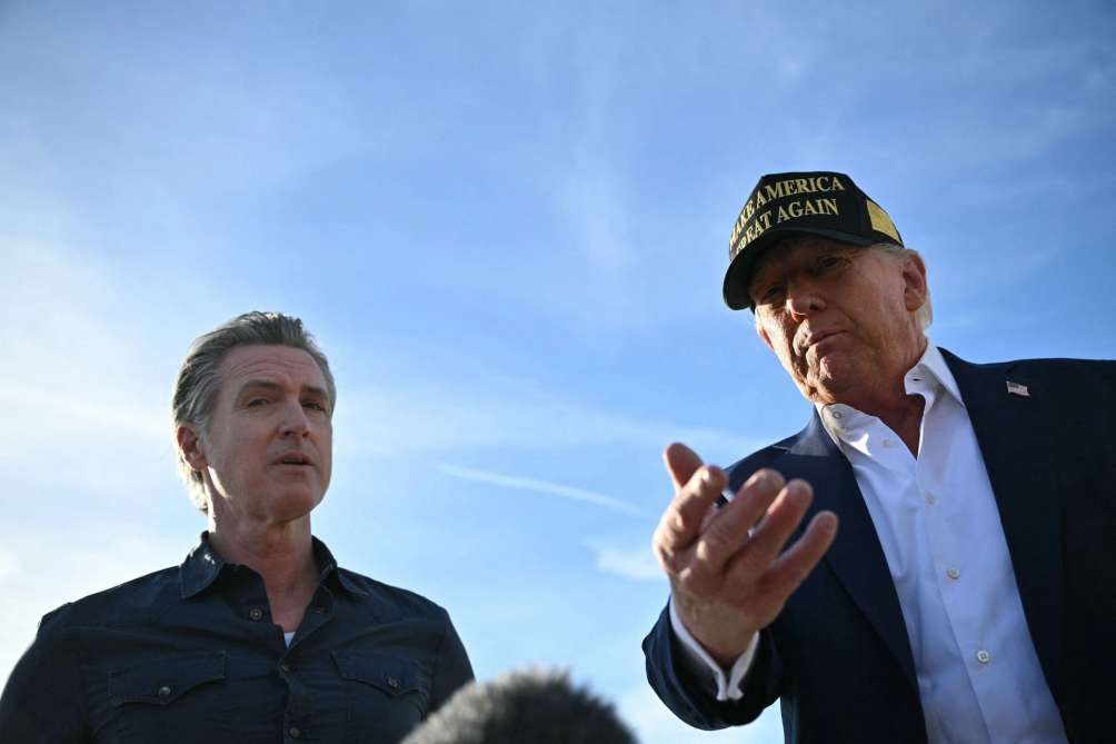 >特朗普(右)和纽森 资料图 图源:“政治新闻网”报道配图