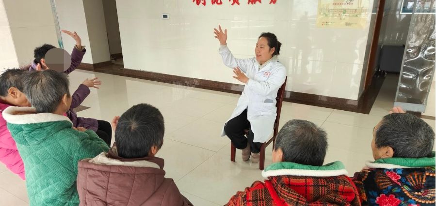 大年初三,武汉市第二社会福利院里,温暖的阳光透过窗户洒进活动室,90后护理员程葩正带着老人们做音乐康复操,一首《我的祖国》响起,几位老人跟着节奏轻轻拍手。(图/武汉极目新闻)