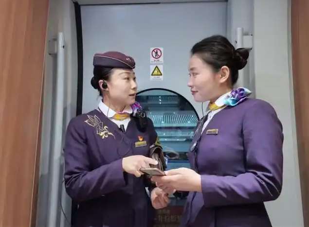 途中,徐捷感慨道,早年值乘普速列车时没有智能设备,检票全靠剪票钳,旅客信息、换乘提醒、重点旅客情况都要手写、口头告知,一趟车下来本子记满、嗓子沙哑。后来徐捷成为首批高铁乘务人员,亲历了从和谐号到复兴号的发展变迁。她告诉王涂涂,21年来,车型、设备、效率都在提升,但用心服务、守住安全,是铁路人的本分,无论条件如何变化,保障安全、服务旅客的初心要始终不变。