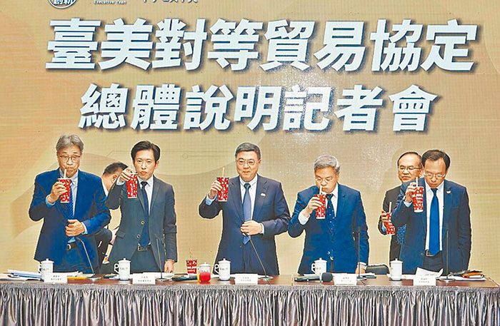 图为台当局行政机构2月13日举行所谓“台美对等关税协定”记者会。(图/台北中时新闻网)