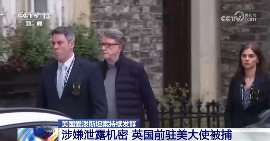 英国前驻美大使曼德尔森23日因涉爱泼斯坦丑闻被捕。(图/中国央视新闻视频截图)