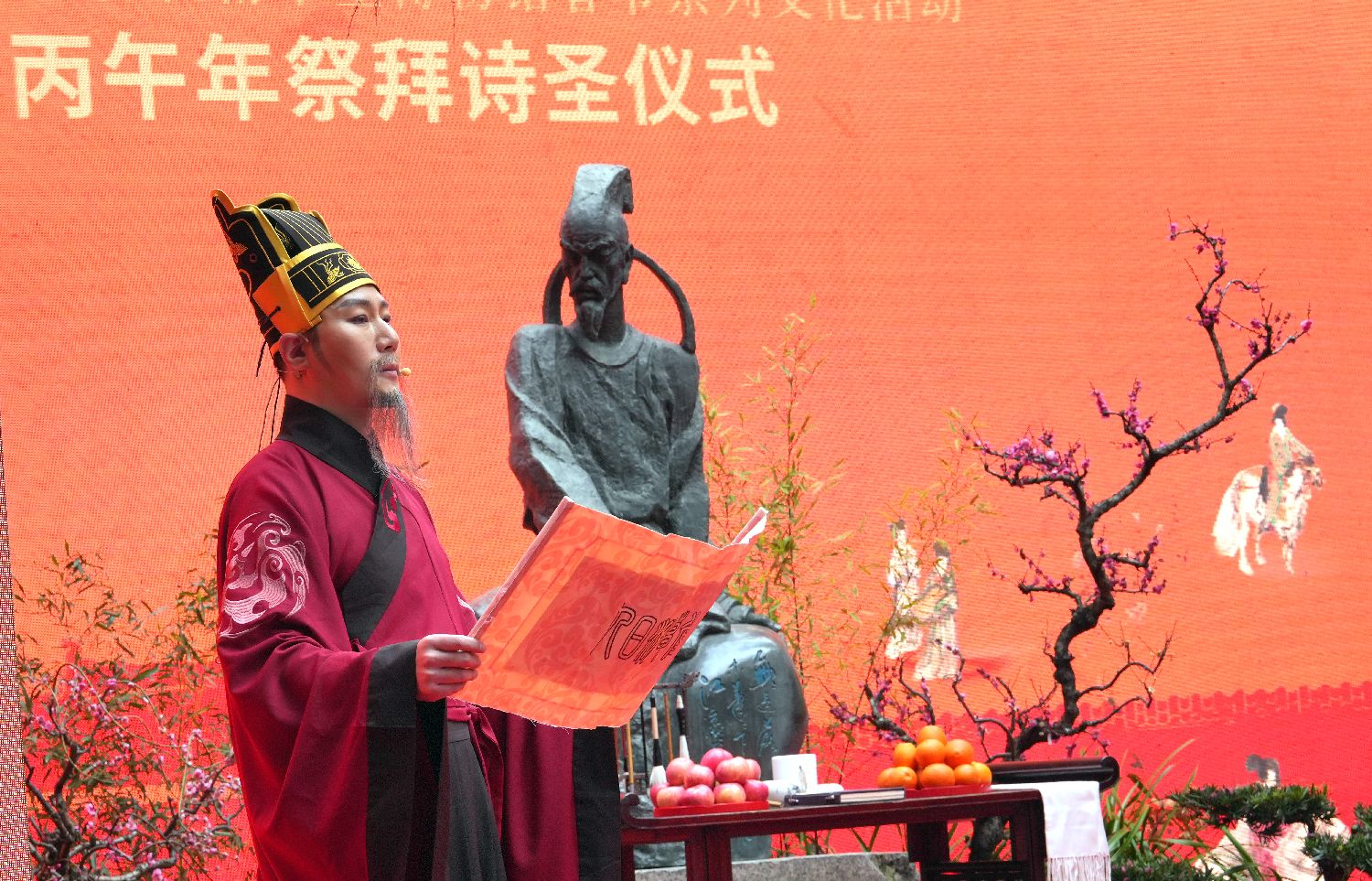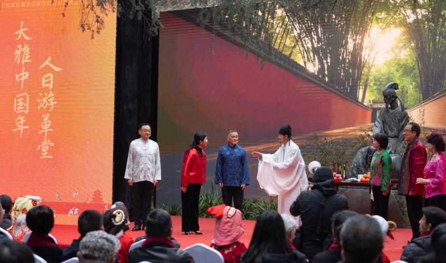 这是2月23日拍摄的丙午马年“人日游草堂”祭拜诗圣仪式。(新华社)