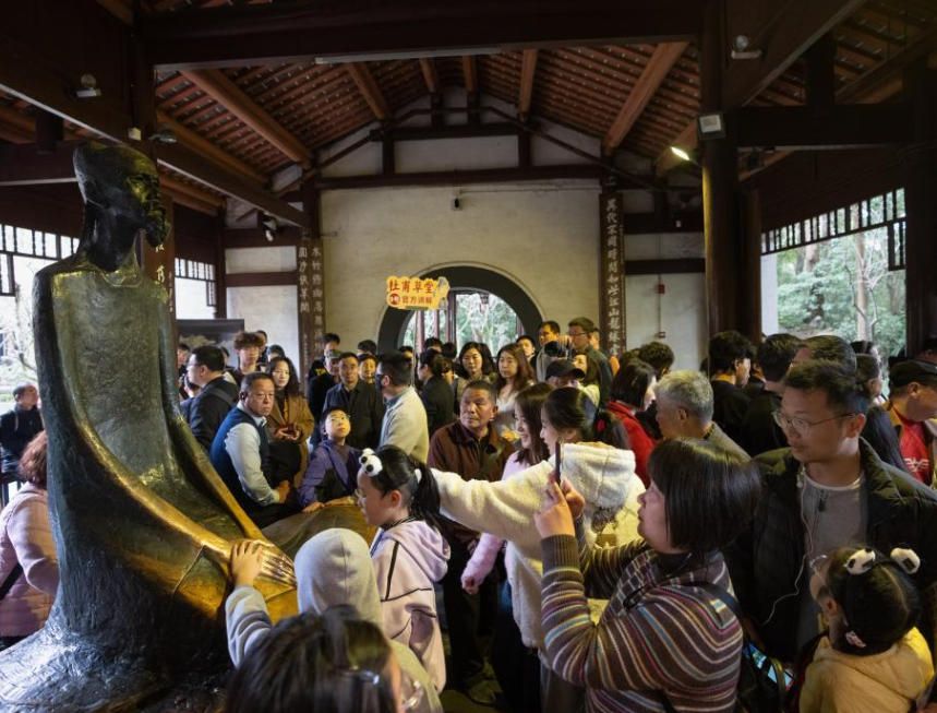 2月23日,众多游客到杜甫草堂凭吊诗圣。(新华社)