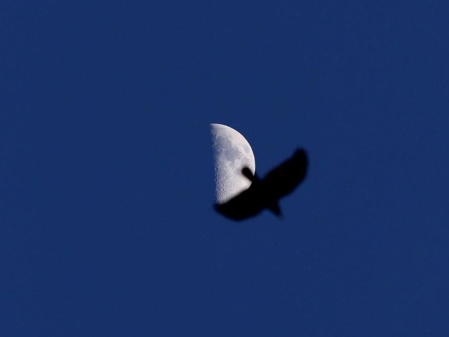图为2月24日在黑龙江省嘉荫县拍摄的月亮。(新华社)