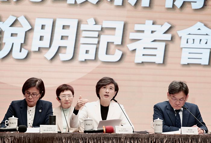 台行政机构副负责人郑丽君24日召开记者会, 说明当前关税最新情势。(图/台北中时新闻网)