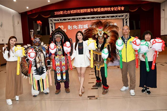 2月25日,2026彰化古城踩街国际嘉年华暨庆典晚会记者会现场。(图/台北中时新闻网)