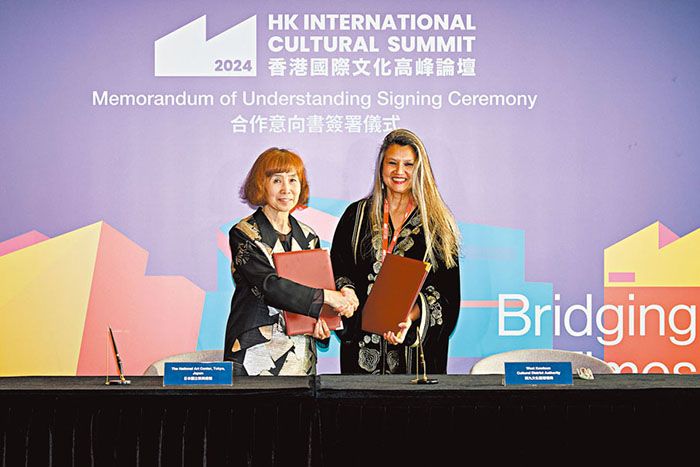 2024年首届香港国际文化高峰论坛期间,香港M+博物馆与日本国立新美术馆签署合作意向书。(图/香港西九文化区管理局)