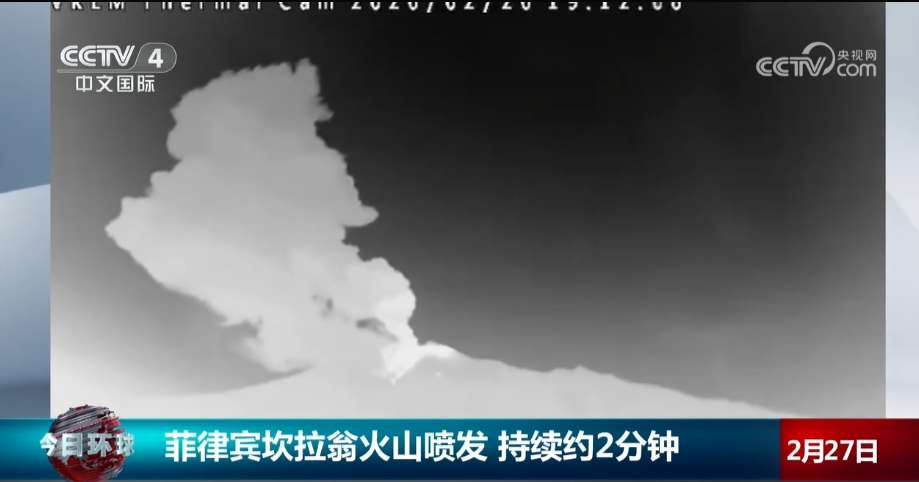 菲律宾坎拉翁火山26日爆炸性喷发。(图/中国央视新闻视频截图)