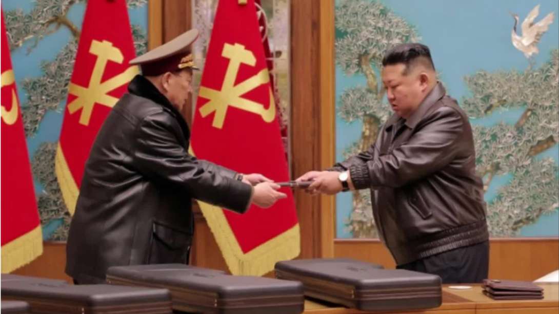朝鲜劳动党总书记、国务委员长金正恩27日在劳动党中央委员会本部会见一些主要领导干部和军事指挥员,并赠予他们礼物——朝鲜国防科学院最近开发的新一代狙击步枪。
