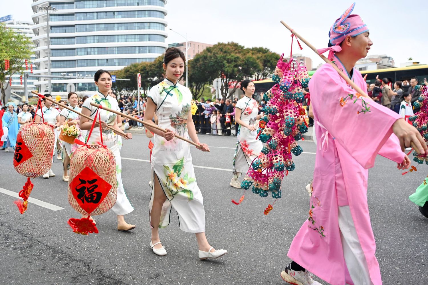 3月1日,广东肇庆,肇庆市高要区新桥镇的新桥洋篮展演队伍亮相当地广府庙会。(图/中新社)