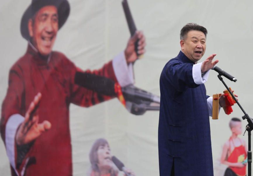 3月1日,农历正月十三,传承七百余年的马街书会在河南宝丰马街村启幕。马街书会,有“十三马街书会”之称,是中国首批国家级非物质文化遗产代表性项目。图为知名评书表演艺术家刘兰芳在马街书会现场献艺。(中新社)
