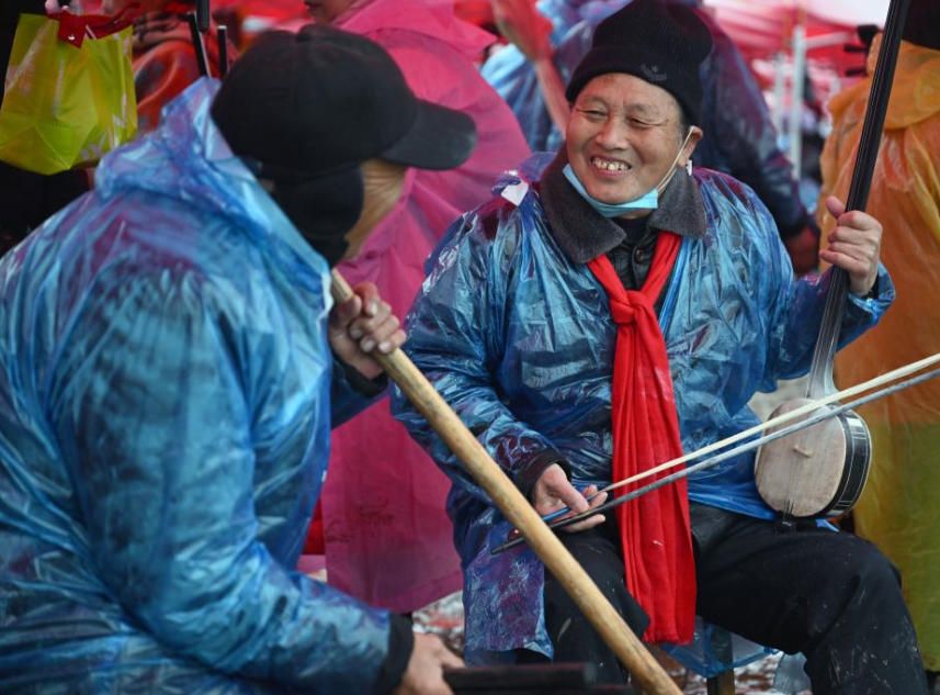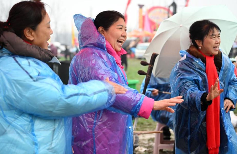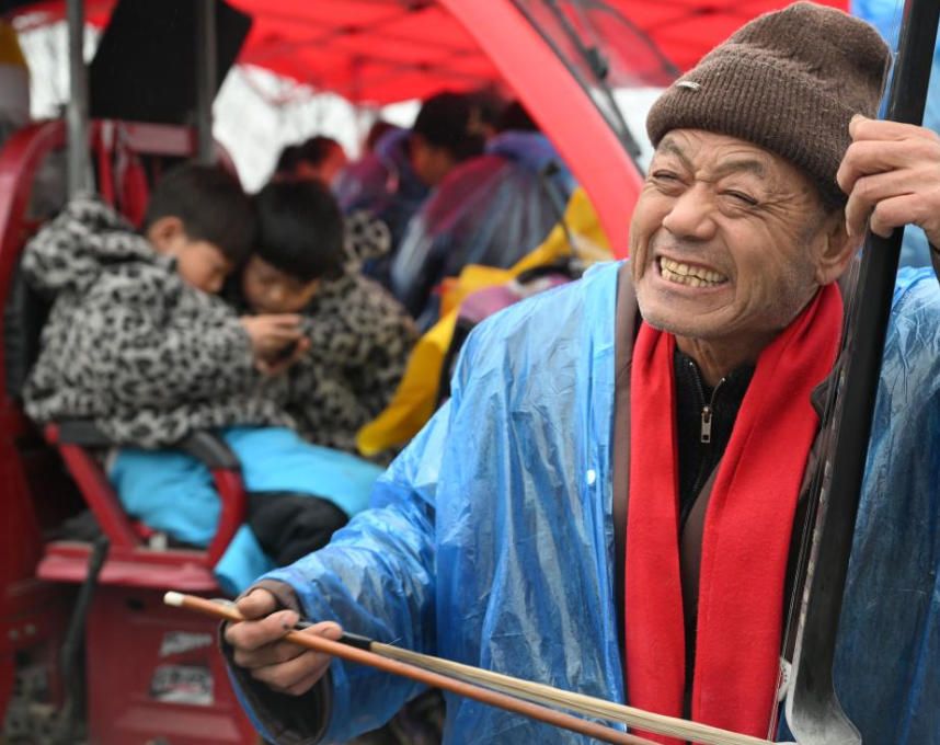 艺人冒雨表演,热情不减。(郑州《河南日报》)