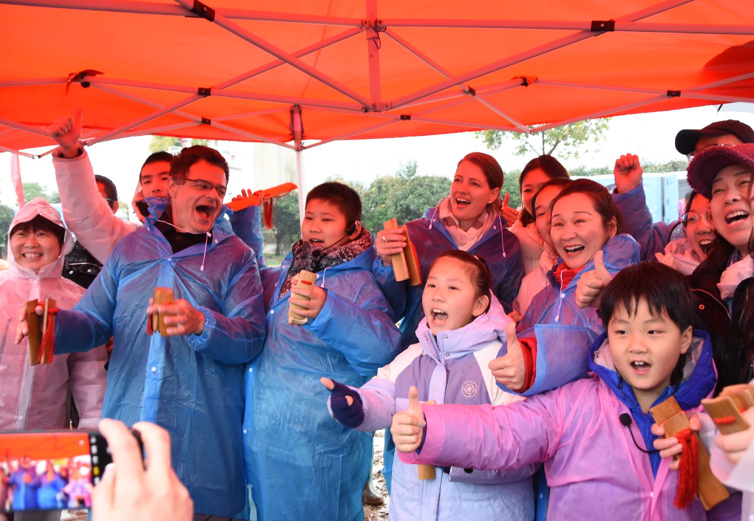 图为外国游客体验传统快板。(中新社)