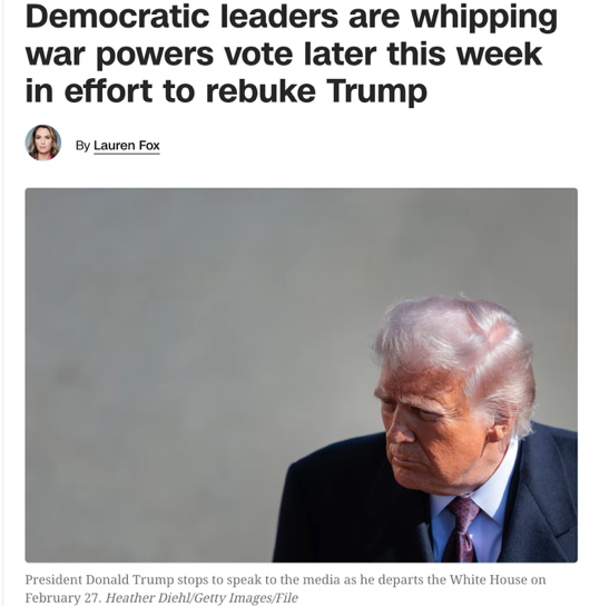 △CNN报道,民主党强力推动“战争权力决议”,希望对特朗普政府发出政治警示。