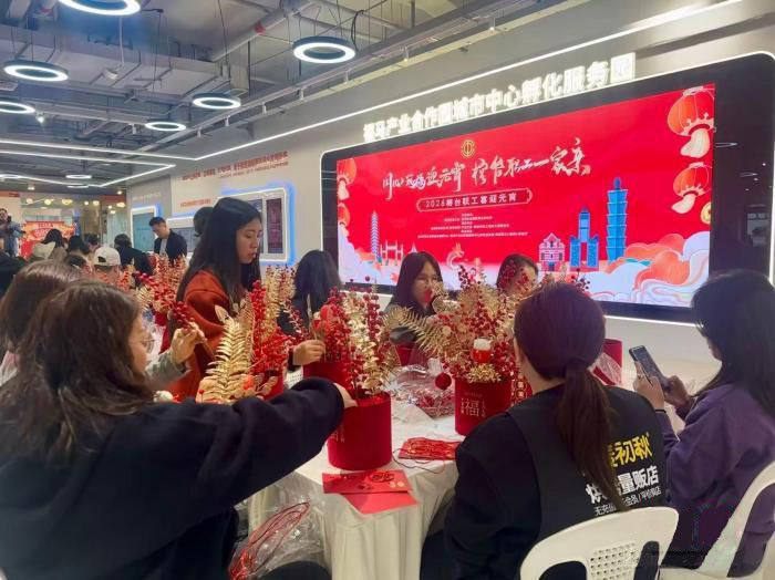 本次活动以“福”文化为纽带,围绕“花福桶DIY”“游园集福·五福临门”等互动环节,融合榕台两地传统年俗与现代创意。“花福桶DIY”手作区内,仿真红冬青、银杏叶、寓意节节高的银柳饰品及新春祝福挂饰琳琅满目。