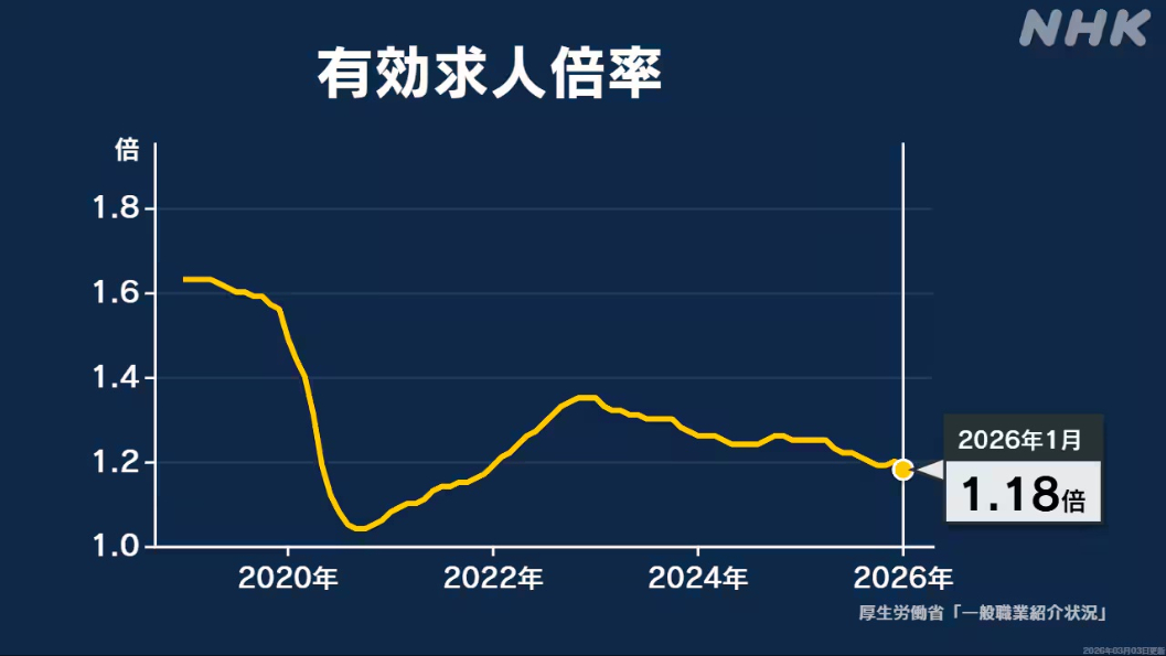 厚生劳动省指出,原材料价格上涨与最低工资提高使企业控制成本,同时部分企业通过引入AI和机器人减少用工需求,招聘趋于谨慎。