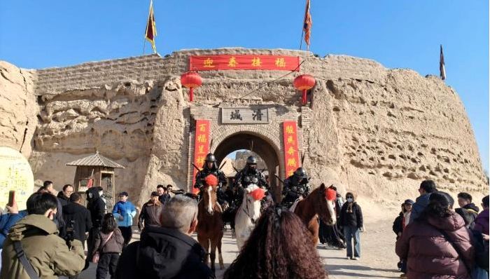 春节期间,游客在镇北堡西部影城游玩。(图/中新网)