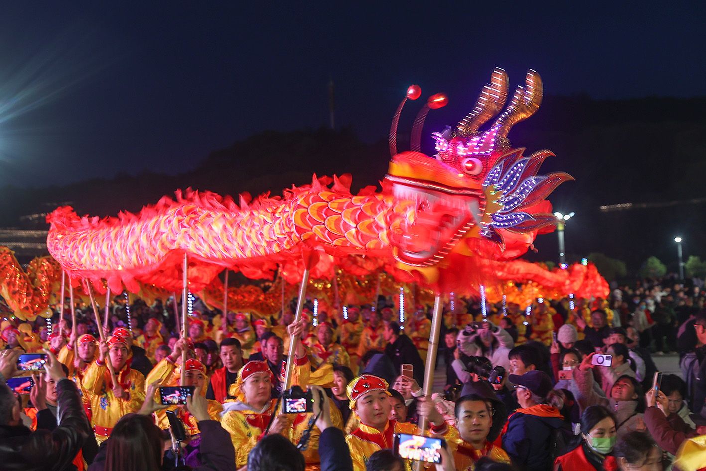 当地时间3月2日晚,福建省连城县文亨镇民众游龙灯喜迎元宵佳节的到来,龙灯长约180米,气势恢宏、寓意吉祥,为新春元宵增添浓浓喜庆。(中新社)