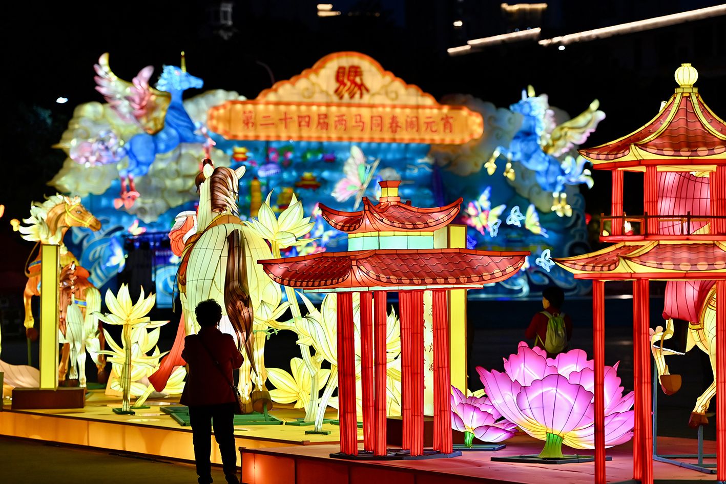 当地时间3月2日晚,福建福州中国船政文化园灯火璀璨,市民纷纷前往参观正在举办的第二十四届“两马同春闹元宵”灯会。本届灯会以“灯耀船政,马跃沧海”为主题,现场布设百余组精美灯组,将两马民俗、船政文化、闽台文化与福建海洋文化融为一体,成为两岸同胞共叙亲情、共庆元宵的重要载体。(中新社)