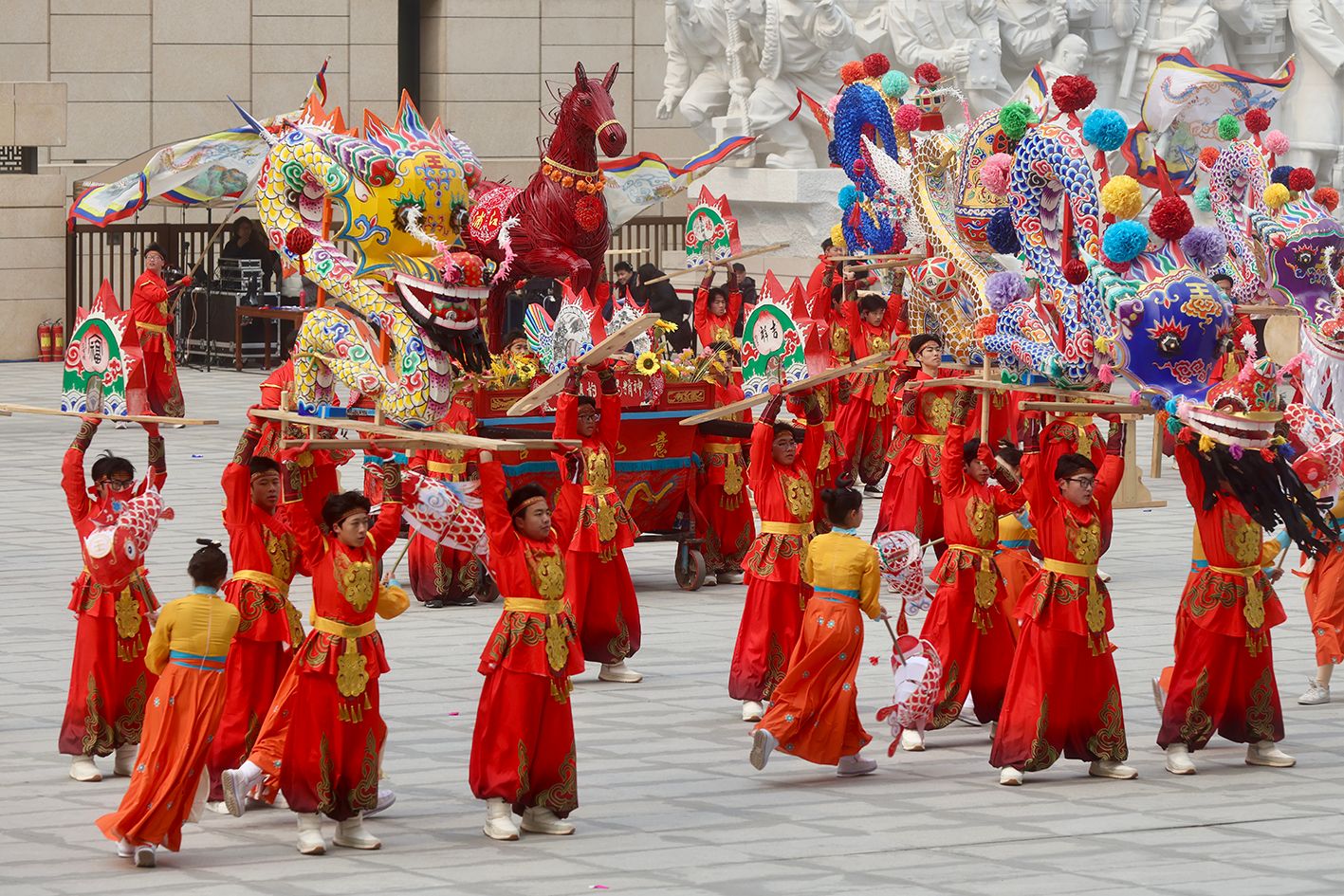 3月1日,正月十五元宵节将至,“非遗贺新春民俗闹红火”宣传展示活动在北京举行。活动特邀来自北京、陕西、山西、浙江、内蒙古等8个省(区、市)的民俗展演团队,吸引了上千市民游客参观。近600位表演人员,集中呈现曾庄大鼓、寿阳高跷竹马戏、麒麟舞、蒙古族马头琴音乐、浦江板凳龙、曲周龙灯、安徽花鼓灯等14项民俗展演项目。图为浦江板凳龙和擂马展演。(中新社)