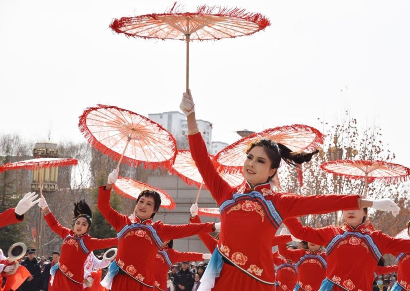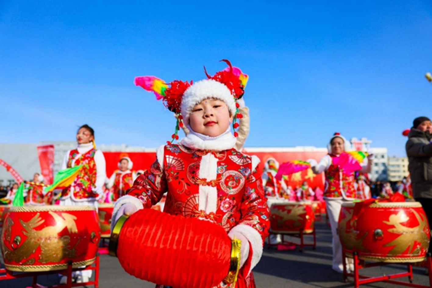 3月3日,黑龙江佳木斯富锦市举办“马跃新程开泰运 粮都秧歌颂康年”第十二届元宵节秧歌汇演,现场龙狮腾跃、彩扇翻飞,秧歌队伍踏雪欢歌,点燃了冰雪季的文旅热潮。(人民网)
