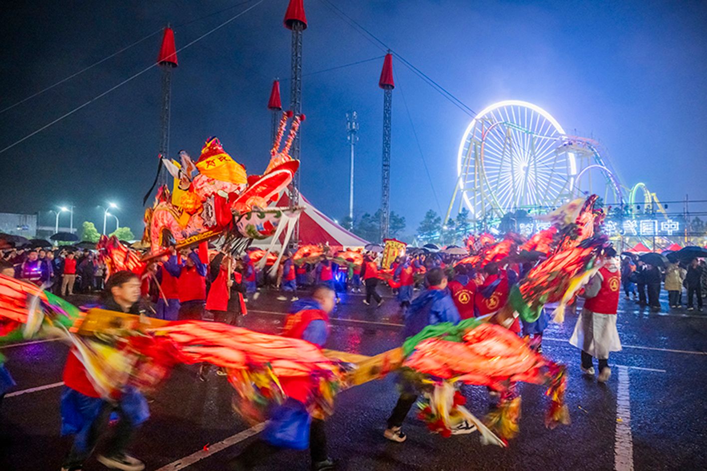 3月1日,安徽芜湖,“欢乐芜湖 奇遇元宵”喜乐荟在春夜喜雨中如期上演。非遗体验区除了香飘四溢的烟火非遗美食,还有氛围感拉满的民俗非遗展示,让游客在逛吃和游玩之间感受浓浓元宵烟火气。(人民网)