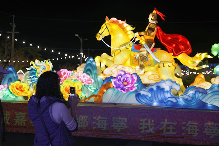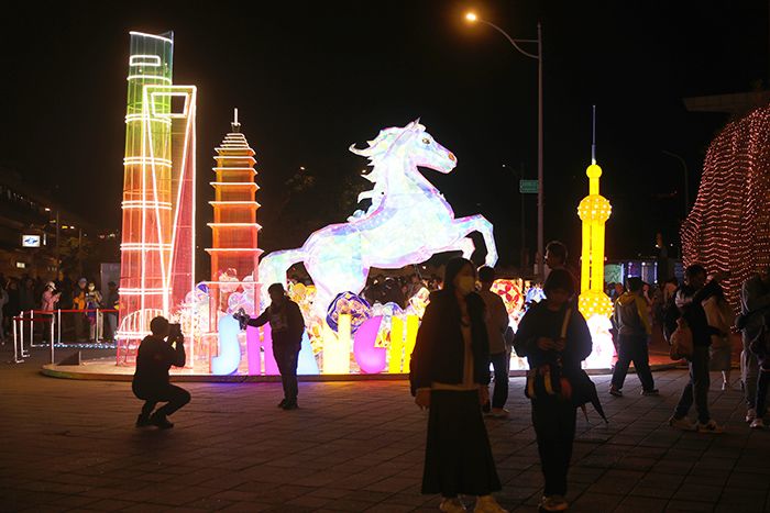 新北灯会的大陆元素同样精彩纷呈。在新北市大都会公园,四川、江苏两地与台湾同胞共同打造了“万马奔腾”灯区。灯区内最大的灯组长30米,呈现千万匹马一起奔跑的景象,象征马年“步步高升、马上开运”的美好寓意。
