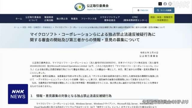 微软涉嫌违反反垄断法,日本公正取引委员会征集信息和意见