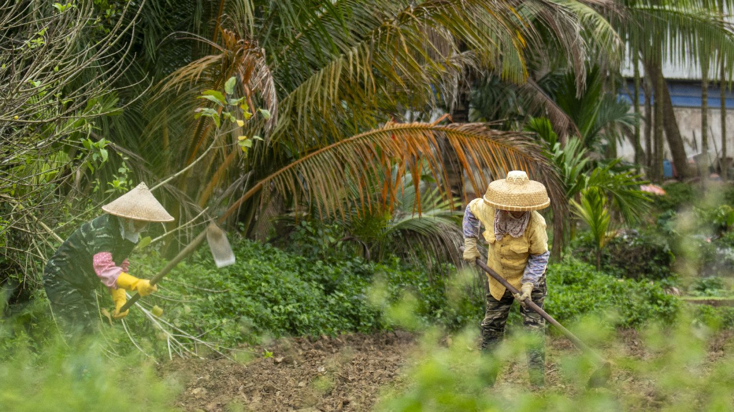 3月5日是中国农历二十四节气中的惊蛰,中国各地农民抢抓农时忙碌在田间地头,开展春管、采收等农事活动。图为3月4日,海南琼海,嘉积镇农民在田园里劳作,绘上一幅人勤春早的农耕画卷。(中新社)