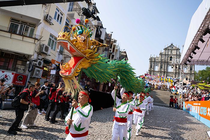 “2026澳门国际幻彩大巡游”将于3月29日举行。图为2025年3月23日“2025澳门国际幻彩大巡游”在大三巴牌坊起步。 (图/香港中通社)