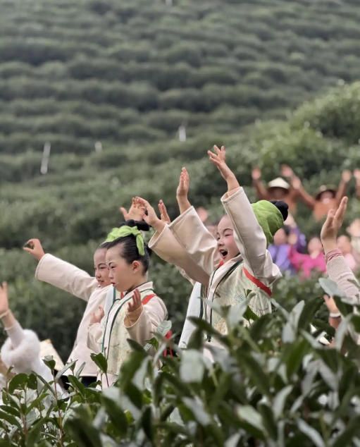 3月5日,身着传统服饰的孩子在茶树间齐喊“茶发芽”。(中新社)
